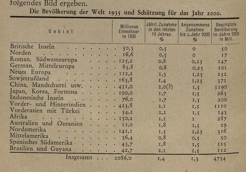 würde es im Jahr 2000 rund 4,7 Milliarden Menschen auf der Erde geben. Tatsächlich waren es dann etwas über 6 Milliarden. Wenn man bedenkt, dass die Forscher und Wissenschaftler in den 1930er Jahren praktisch keine computerisierte Unterstützung hatten, eine ziemlich gute Vorhersage, würde ich sagen...