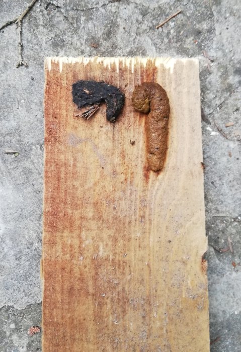 Die letzten Nächte war es ganz besonders. Ich habe da von einer Bastelei noch ein Holzbrettchen am Balkon liegen. Dieses Tier kackt in der vorvorigen Nacht auf das Brettchen. Ich sehe es zwar, habe aber keine Zeit, das Würstchen wegzuräumen. In der Nacht drauf kackt das Viecherl wieder auf das Brettchen, genau neben das alte Würstchen.