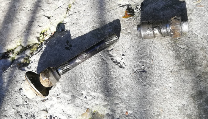 an der gleichen Stelle abgebrochen, wie beim letzten Mal. Ich zerlege also die Radnabe, suche eine neue Achse, die passenden Kugeln für das Lager und alle Abstandshalter. (Es hat schon was Gutes, wenn man alle Teile von allen Reparaturen aufhebt.) Als ich dann das reparierte Laufrad einbauen möchte, muss ich noch den hinteren Werfer befestigen, der ist ein wenig locker und plötzlich...